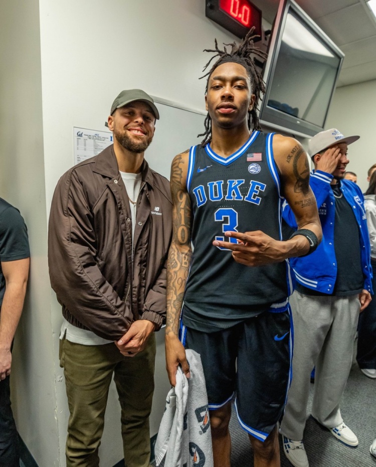 赛后戴尔·库里、斯蒂芬·库里、赛斯·库里父子三人到访了杜克的更衣室,而作为校友的赛斯见到这群学弟们也非常开心。